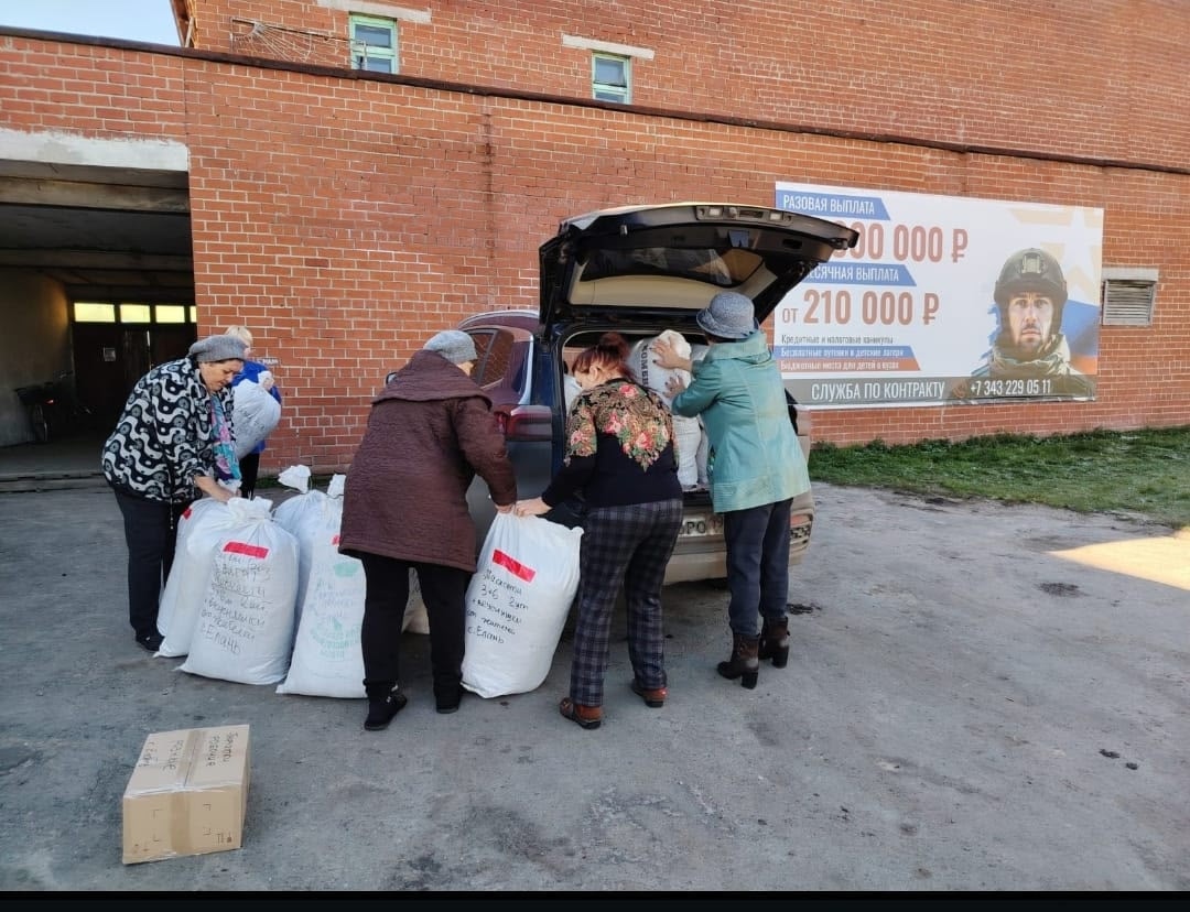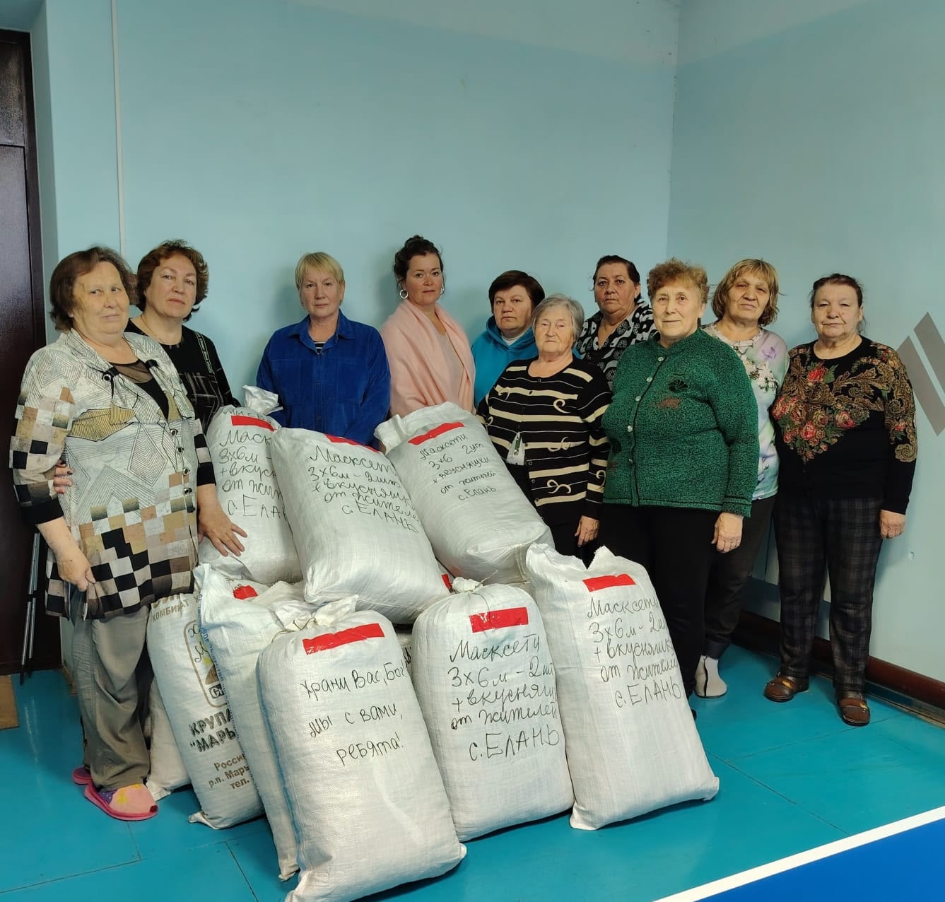 Очередную партию маскировочных сетей, а также продукты питания отправили для солдат в зону проведения СВО волонтёры Совета ветеранов села Елань.